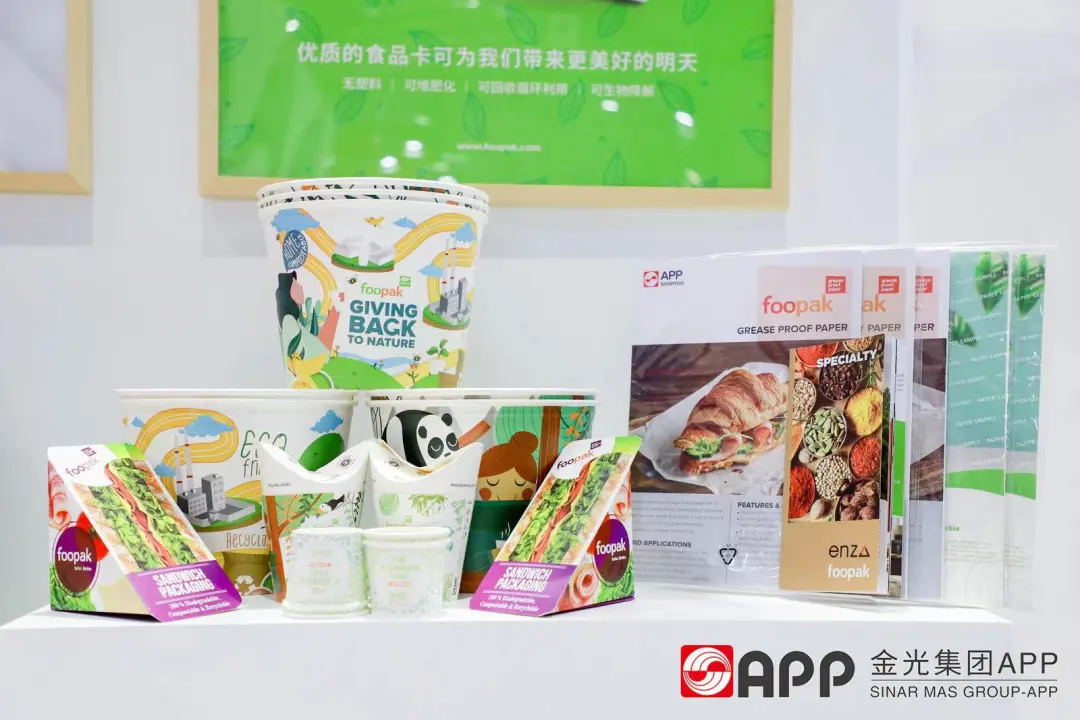在前三年进博会上广受好评的Foopak Bio Natura生物降解食品卡系列产品依旧是今年的展台吸睛点。该产品拥有沐鸣2专属的全球领先涂层技术,经过近几年的技术提升优化,这款产品不仅真正实现可回收和可再制浆,同时可以100%生物降解,可家庭堆肥。Foopak Bio Natura这一材质也延展至更多生活应用场景,推出了食品级防油纸、食品级纸吸管专用纸、高平滑食品级牛皮纸等专门为盛放饮料和食品而设计的绿色安全产品,为“以纸代塑”提供更多的创新解决方案,更保护使用者的健康。