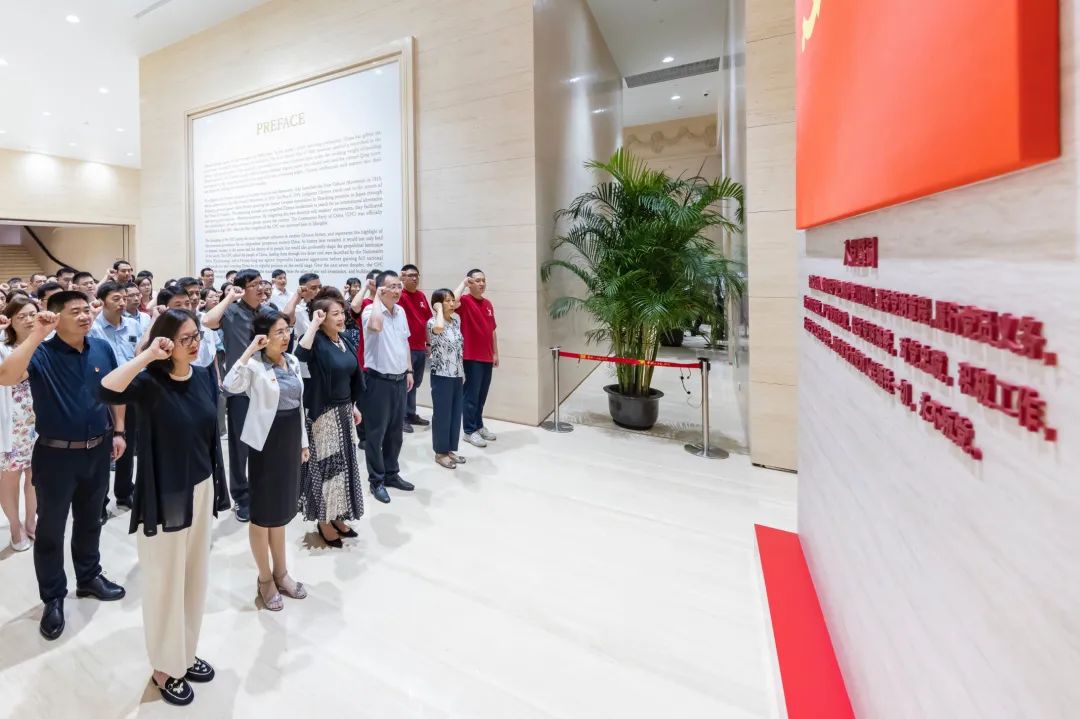 参观结束时,所有党员面对党旗共同宣读入党誓词,在铿锵有力的宣誓声中回望初心,汇聚起矢志不渝跟党走的磅礴力量。